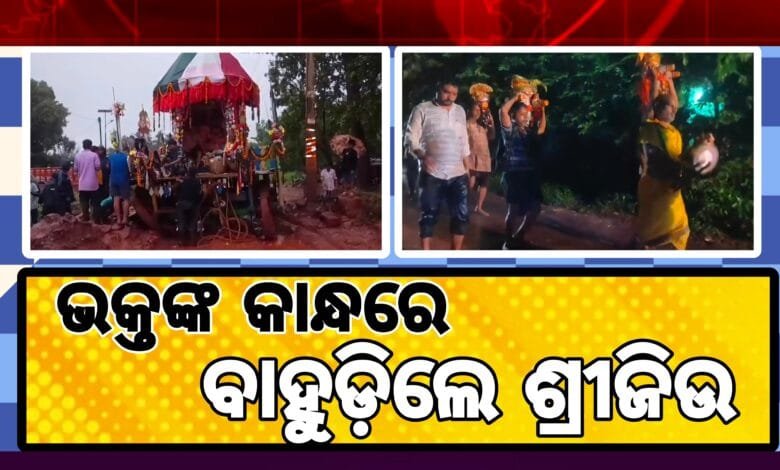 ବଡ଼ବିଲ/୦୬/୦୭ – ବିଭିନ୍ନ ସ୍ଥାନରେ ଭକ୍ତିମୟ ପରିବେଶରେ ମଧ୍ୟରେ ପବିତ୍ର ବାହୁଡ଼ା ଯାତ୍ରା ସମ୍ପନ୍ନ ହୋଇଛି । ହେଲେ, କେନ୍ଦୁଝର ଜିଲ୍ଲା ଯୋଡ଼ା ବ୍ଲକ୍ ବଡ଼କାଳିମାଟିରେ ବିଶ୍ଵ ନିୟନ୍ତାଙ୍କ ବାହୁଡ଼ା ସମୟରେ ଏମିତି ଏକ ଅଭାବନୀୟ ଘଟଣା ଘଟିଛି ଯାହା କୋଟି ଜଗନ୍ନାଥପ୍ରେମୀଙ୍କୁ ବ୍ୟଥିତ କରିଛି । ଦୁବୁନା ଗୁପ୍ତେଶ୍ୱର ଉଚ୍ଚ ବିଦ୍ୟାଳୟ ନିକଟରେ ଥିବା ମାଉସୀ ମା’ ମନ୍ଦିରରୁ ଚତୁର୍ଦ୍ଧା ମୂର୍ତ୍ତିଙ୍କୁ ରଥାରୁଢ଼ କରି ବଡ଼କାଳିମାଟିରେ ଅବସ୍ଥିତ ଶ୍ରୀଜଗନ୍ନାଥ ମନ୍ଦିର ପର୍ଯ୍ୟନ୍ତ ରଥ ଟଣା ଚାଲିଥିଲା । ଘଣ୍ଟଘଣ୍ଟା ବଜାଇ ହରିବୋଲ ପକାଇ ଖାଲ, କାଦୁଅ ପଚପଚ ରାସ୍ତାରେ ରଥକୁ ଟାଣିଟାଣି ନେଉଥିଲେ ଭକ୍ତ । ମାତ୍ର, ରାସ୍ତା ଏପରି ହୋଇଥିଲା ଯେ, କିଛିବାଟ ଯିବାପରେ ରଥର ଦୁଇଟି ଚକ ଭାଙ୍ଗି ଯାଇଥିଲା । ଏମିତିରେ ରଥ ଆଉ ଆଗକୁ ଗଡ଼ିବା ସମ୍ଭବ ହୋଇପାରିନଥିଲା । ଏଭଳି ପରିସ୍ଥିତିରେ ଭକ୍ତ, ଶ୍ରୀଜୀଉ ମାନଙ୍କୁ ନିଜ କାନ୍ଧରେ କାନ୍ଧେଇ ମନ୍ଦିର ପର୍ଯ୍ୟନ୍ତ ନେଇଥିଲେ ।